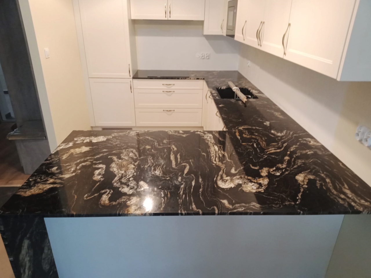 Jeśli Twoja kuchnia jest bardzo kolorowa lub znajduje się w niej wiele elementów, możesz chcieć wybrać granit o bardziej jednolitej strukturze, aby uzyskać odpowiedni kontrast. Z drugiej strony, jeśli postawiłeś na prostotę i Twoja kuchnia ma surowy i sterylny wygląd, możesz go ożywić i wzbogacić wybierając blat granitowy z bogatym i wyrazistym wzorem.