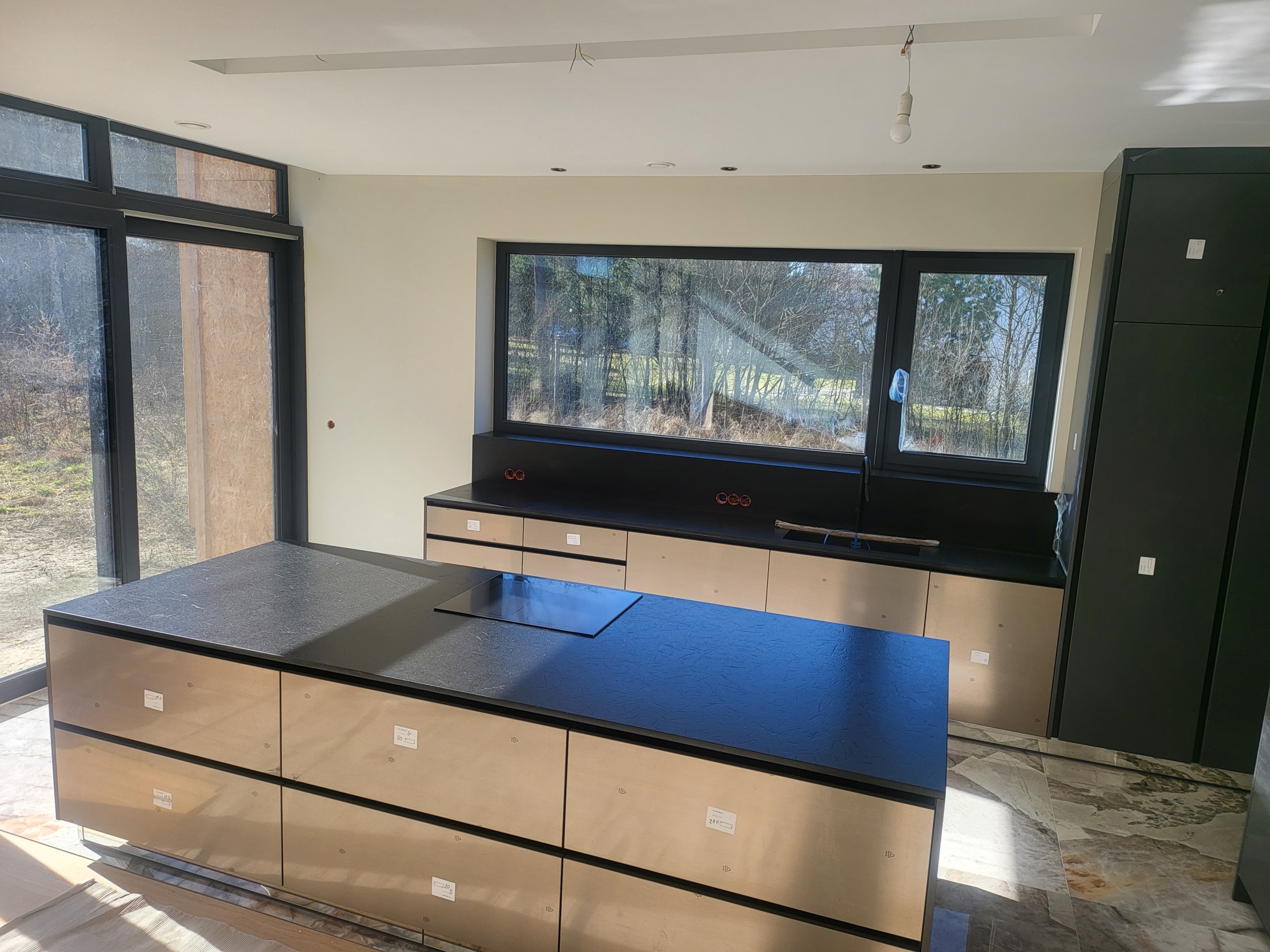Blaty granitowe w kolorze czerni, dzięki swojej uniwersalności, będą dobrze pasować do neutralnej lub monochromatycznej palety kuchni, choć nie zawsze jest to regułą. Czarne blaty spiszą się najlepiej w dobrze oświetlonych kuchniach, choćby dla tego, że zazwyczaj są one pełne białych lub srebrnych nuty kolorystycznych, które dobrze odbijają światło.