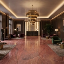 Houzz odnotowuje wyraźny wzrost zainteresowania wśród swoich użytkowników kamieniem o żyłkowaniu w odcieniach zieleni, brązu, czerwieni i złota — materiałami, które wnoszą ruch i ciepło bez wizualnego przytłaczania przestrzeni.