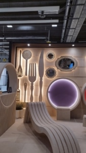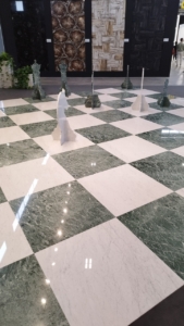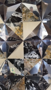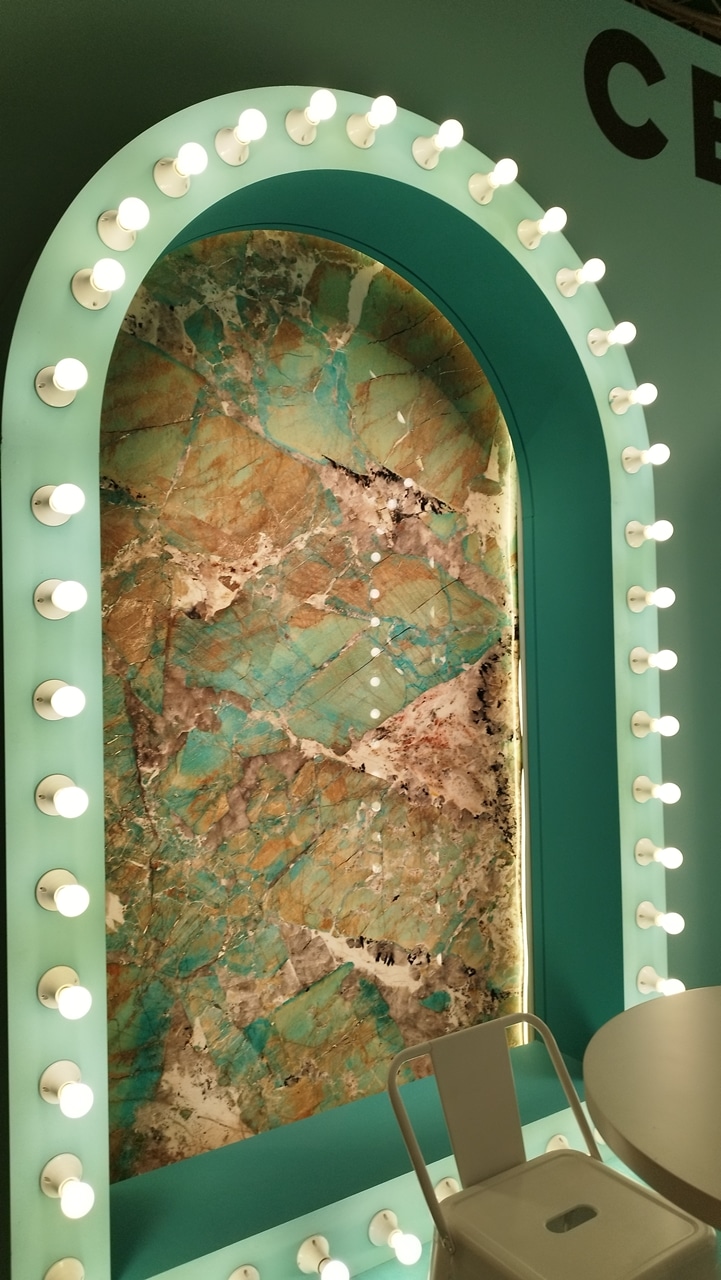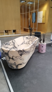 Ogólnie obecna była zieleń w wielu odcieniach i formach, to bardzo nas cieszy, bo sami również obserwujemy coraz większe zainteresowanie kolorowymi marmurami i w Polsce. Polacy wcale nie są w tyle jeśli chodzi o deisgn, na pewno nadrabiamy modowe nowości coraz szybciej 🙂