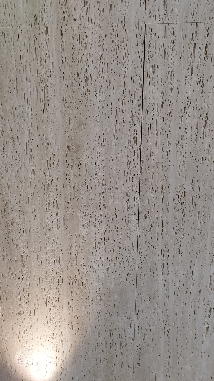 Włosi za to nie zawiedli w swoich klasycznych materiałach, ale jak zwykle i w designie. Nowe pomysły na obróbkę, łączenie kolorów i wzorów, ciekawa sztuka prezentowana w osobnym dziale, to ich specjalność. To oni często nadają ton, co będzie modne we wnętrzach, jakie materiały, w jakich wykończeniach itd. Tu poniżej pomysł by trawertyn bez wypełnień podświetlić i w ten sposób powstaje magiczna ściana w dużo lepszej cenie niż z onyxu lub kryształu.
