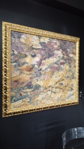 Bardzo ciekawie zaprezentowały się również francuskie marmury, nawiązując do sztuki. Marmur wyglądający jak dzieło malarza impresjonisty- prezentowany jak obraz w złotej ramie…