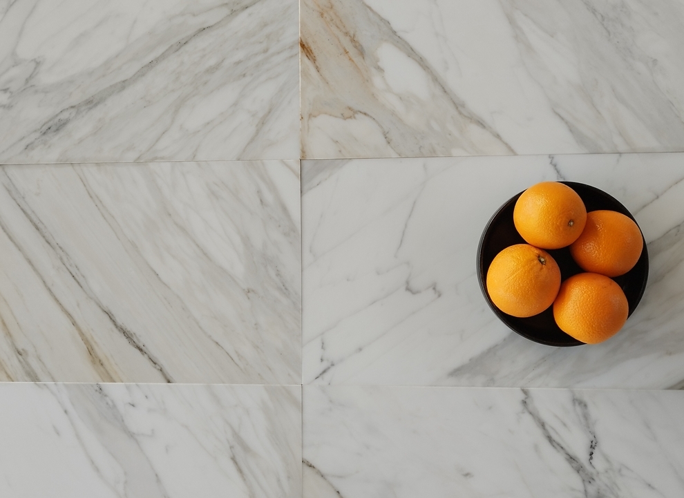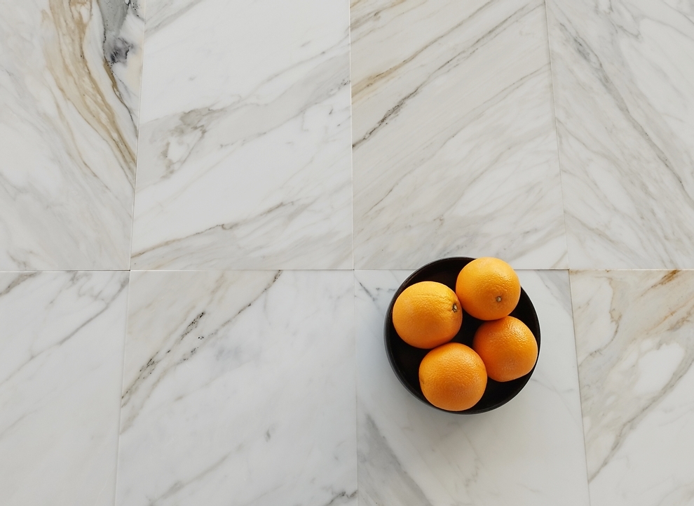 • Płytki Calacatta Gold są dostępne w rozmiarze 45,7 x 45,7 x 1cm.
