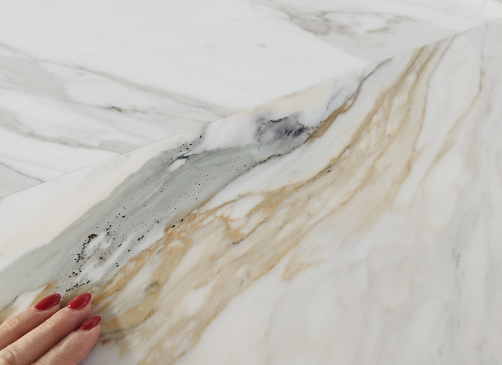 Calacatta Gold MH2 – eleganckie, z klasą. Naturalne wzory, niepowtarzalne. Idealnie sprawdzą się zarówno w kuchni, jak i łazience.