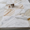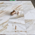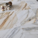Calacatta Paonazzo SH – niesamowicie piękne, ciekawe płytki marmurowe w matowym wykończeniu. Bardzo rzadko spotykany marmur, o intensywnych barwach, jasnym tle i pięknie rysujących się żyłach. Mleczno – alabastrowe tło spowite jest żyłkami w złotym kolorze, gdzieniegdzie trafiają się ciemnoszare i brązowe żyłki. Niesamowity materiał. ekskluzywny. Mamy tego tylko małą, wyselekcjonowaną partię.