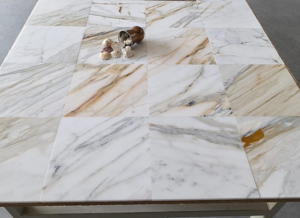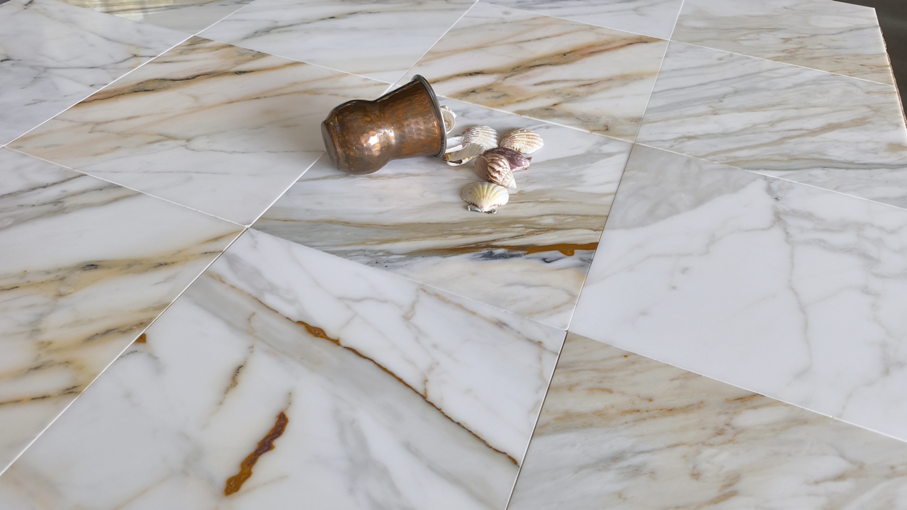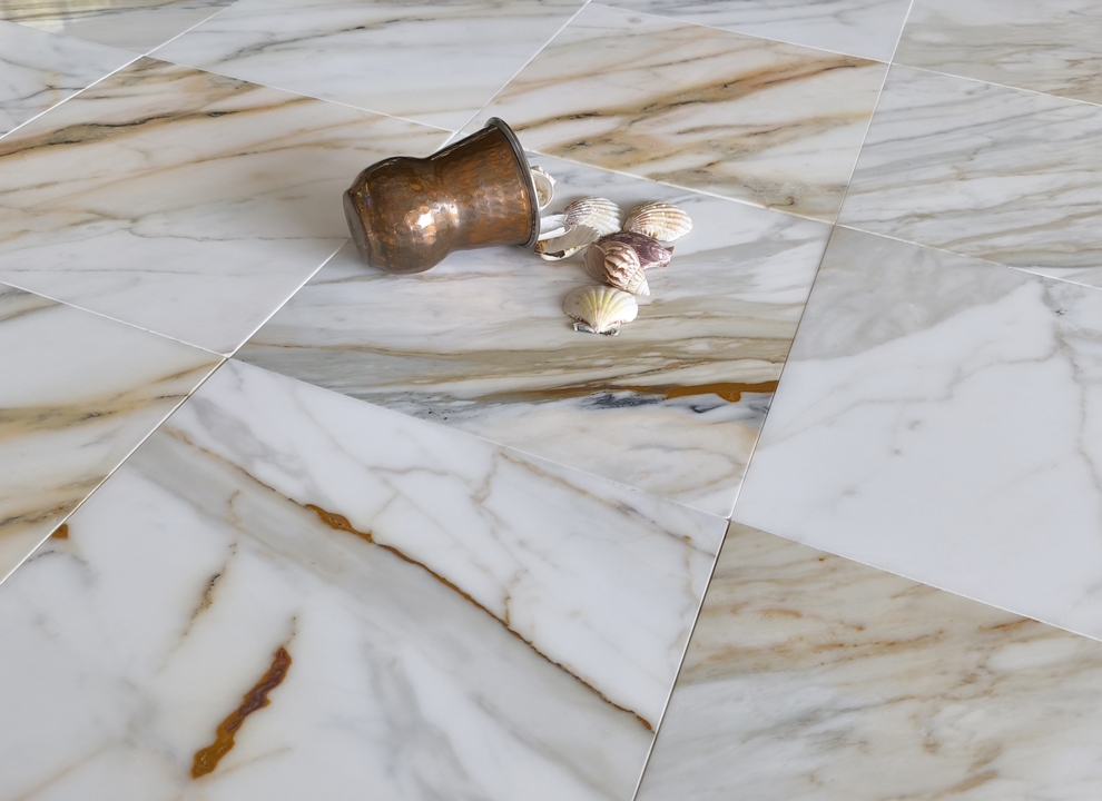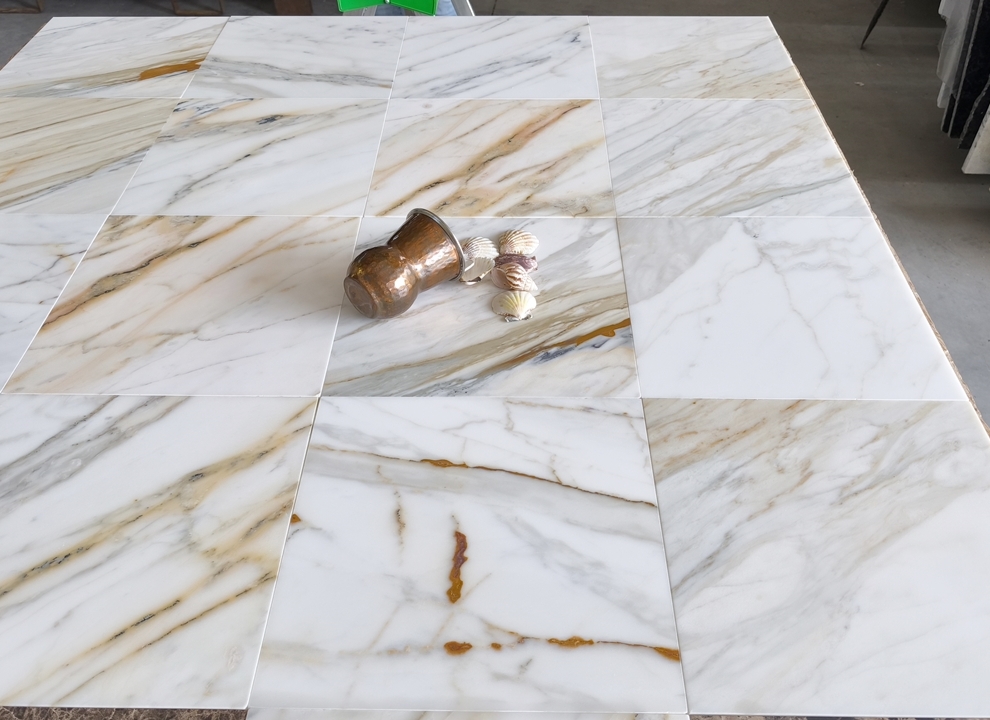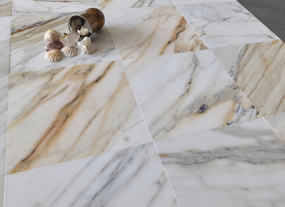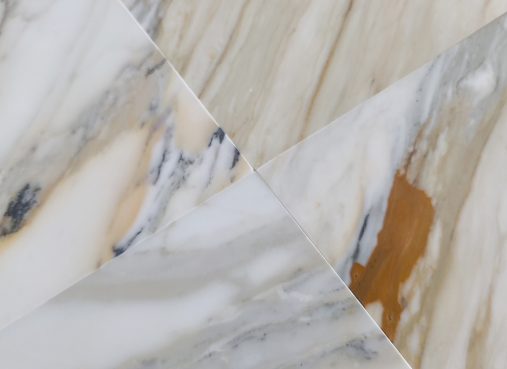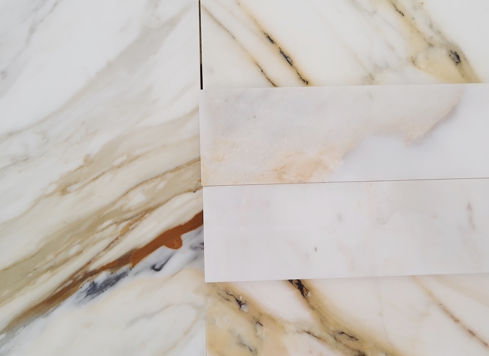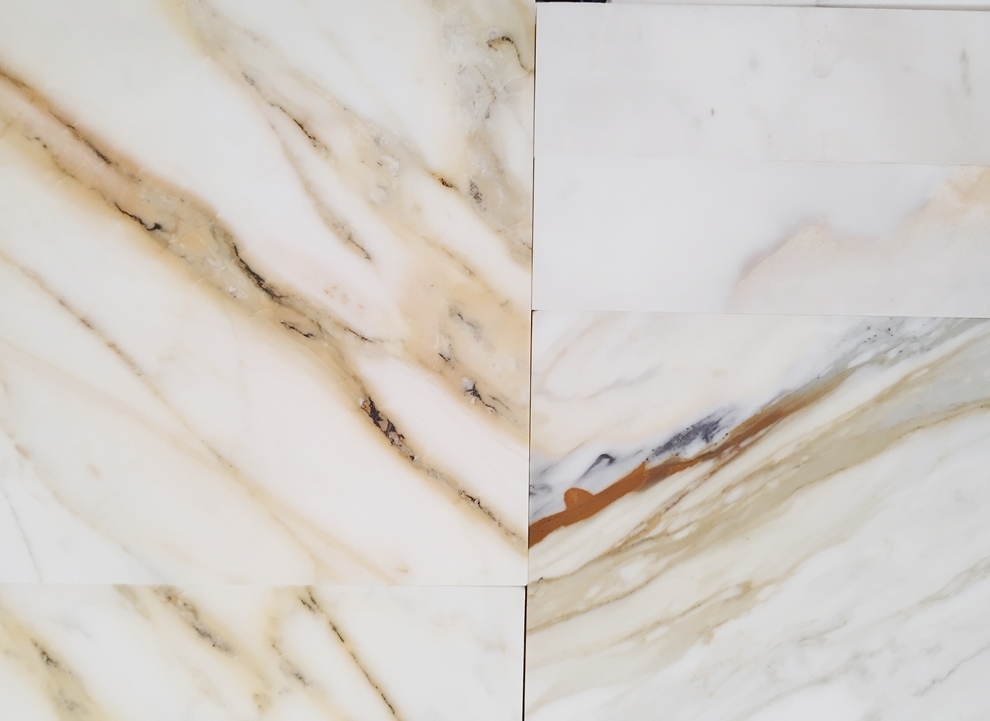 Calacatta Paonazzo SH – bardzo ładnie komponuje się z Jodłą z Calacatty Amber, można tym produktem uzupełnić aranżację wnętrza. Poniżej na zdjęciu razem z Jodłą- prawy górny róg.