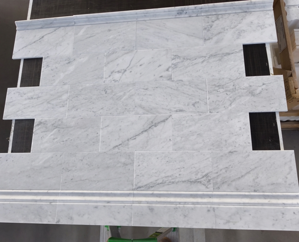 Cegiełki Bianco Carrara CH4 – cegiełki są w fajnym, dość dużym rozmiarze, kalibrowane, lekko fazowane, bardzo łatwo się je układa.