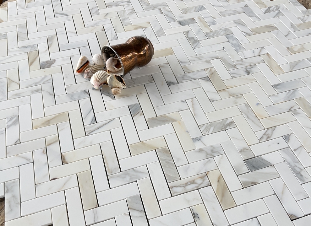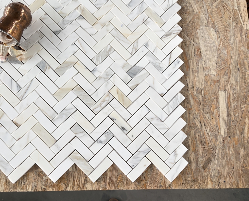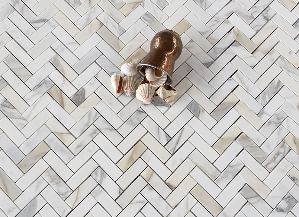 Jodełka Calacatta Gold mat – Materiał ten świetnie komponuje się z drewnem naturalnym, sprawdza się zarówno ze srebrnymi, złotymi i miedzianymi dodatkami. Stworzy niepowtarzalne, designerskie wnętrze. Już nawet niewielka ilość marmuru sprawia, że wnętrze nabiera indywidualnego, niepowtarzalnego charakteru.