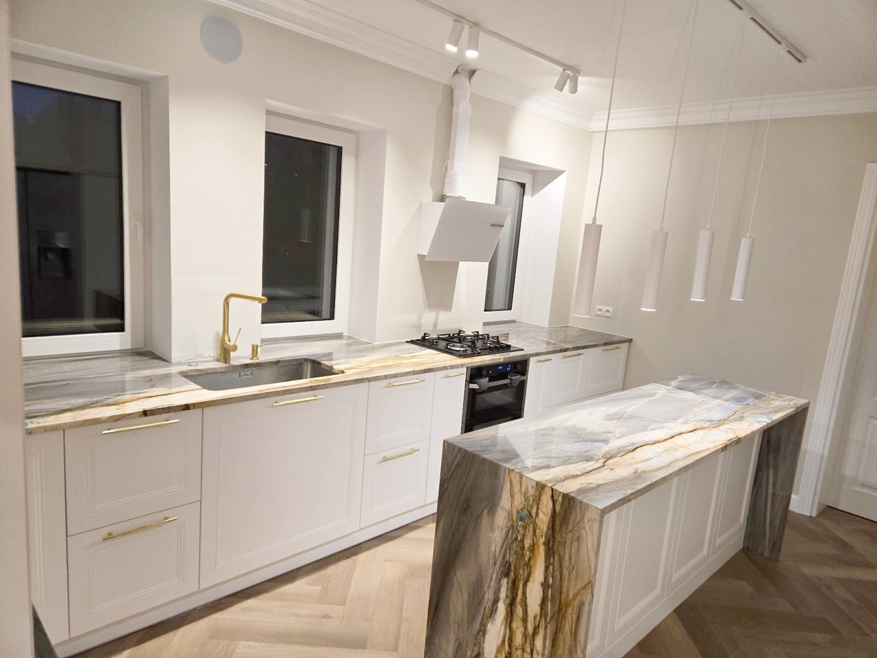 Kwarcyt Infinity Blue to kwintesencja klasy Super Exotic – materiał stworzony przez naturę z artystyczną precyzją. Jego intensywna, wielowymiarowa kolorystyka – błękity, srebra, rdzawe i złote żyły – sprawia, że każdy slab wygląda niczym ręcznie malowany pejzaż. To nie tylko kamień, ale spektakularny element aranżacji, który przyciąga uwagę i podnosi prestiż każdej przestrzeni. Wybierany przez architektów i inwestorów, którzy poszukują materiału wyjątkowego, niepowtarzalnego i luksusowego – Infinity Blue jest wyborem, który definiuje wnętrze.