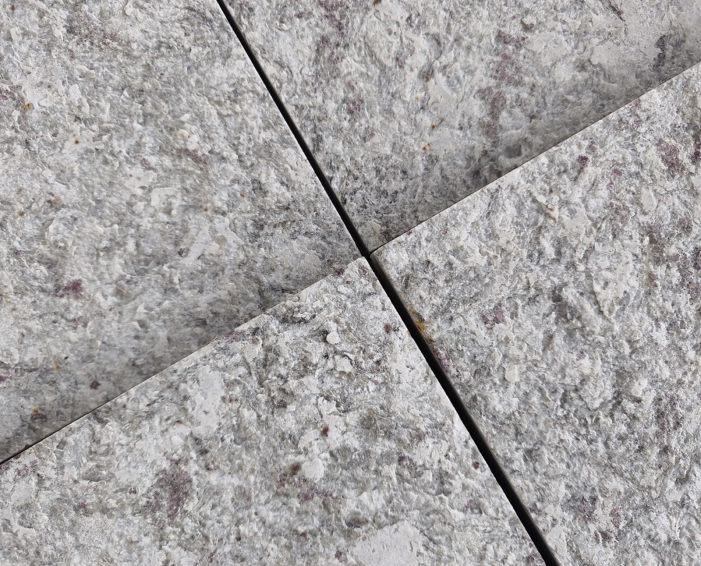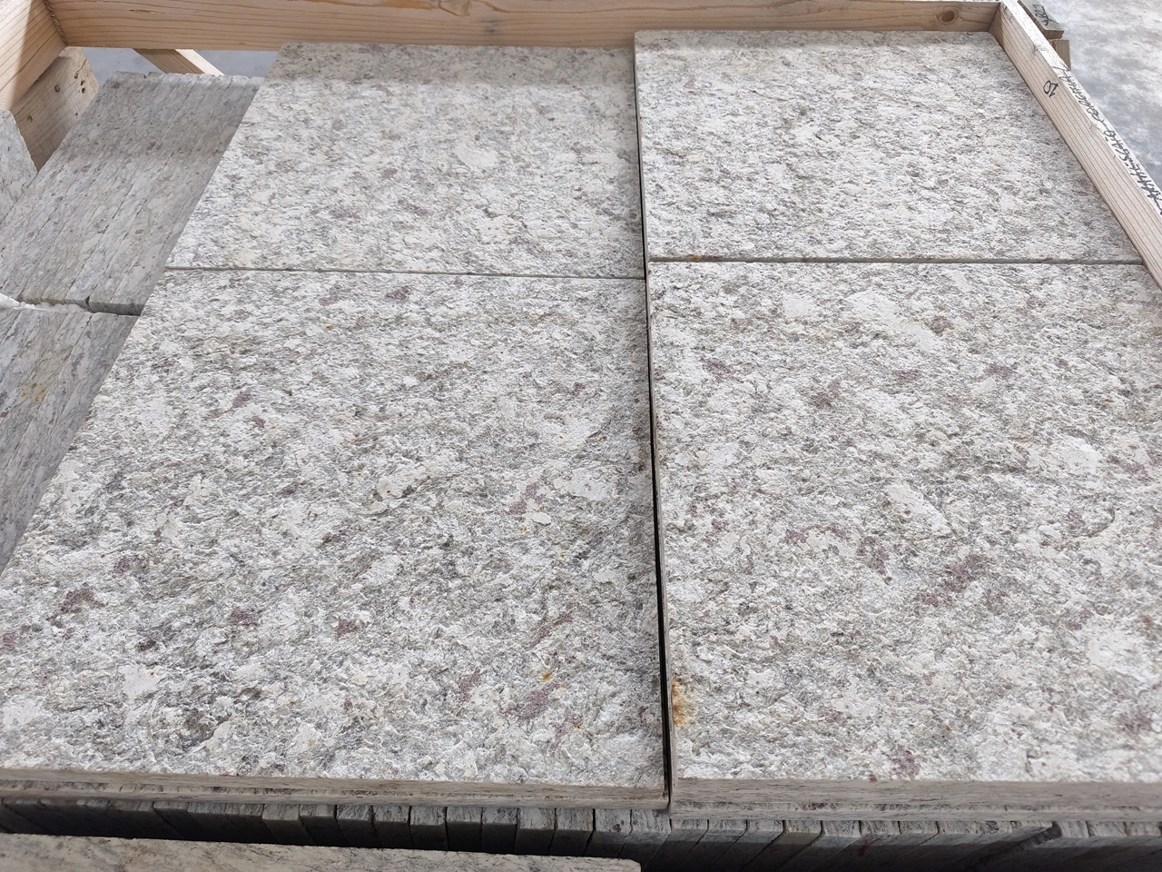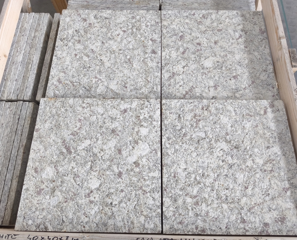 Indyjski granit Moon White o powierzchni płomieniowanej idealnie nadaje się na tarasy, balkony, podjazdy i schody zewnętrzne. Jego jasnoszary, niekiedy delikatnie beżowy kolor z dodatkiem rdzawych kropek i grube ziarno sprawiają, że jest bardzo oryginalny. Strukturą nieco przypomina popularny Kashmir White, ale ma delikatny lawendowy odcień. Jak nazwa wskazuje przypomina nieco kamień księżycowy.
