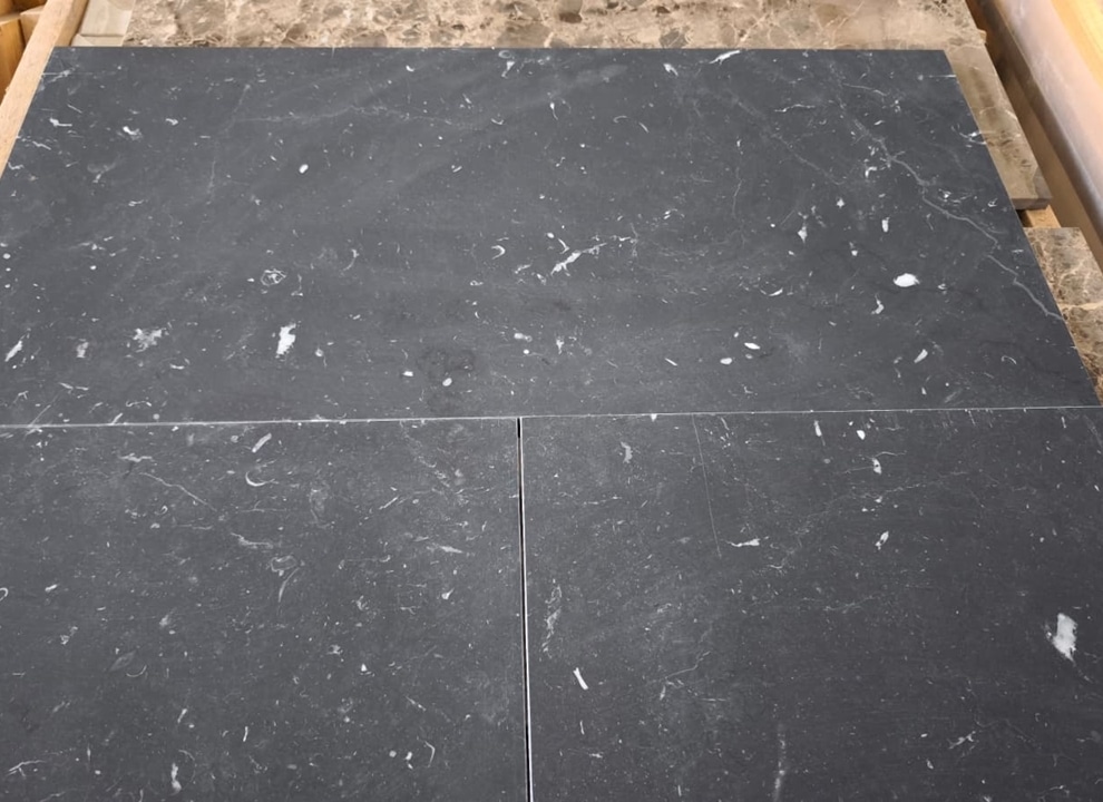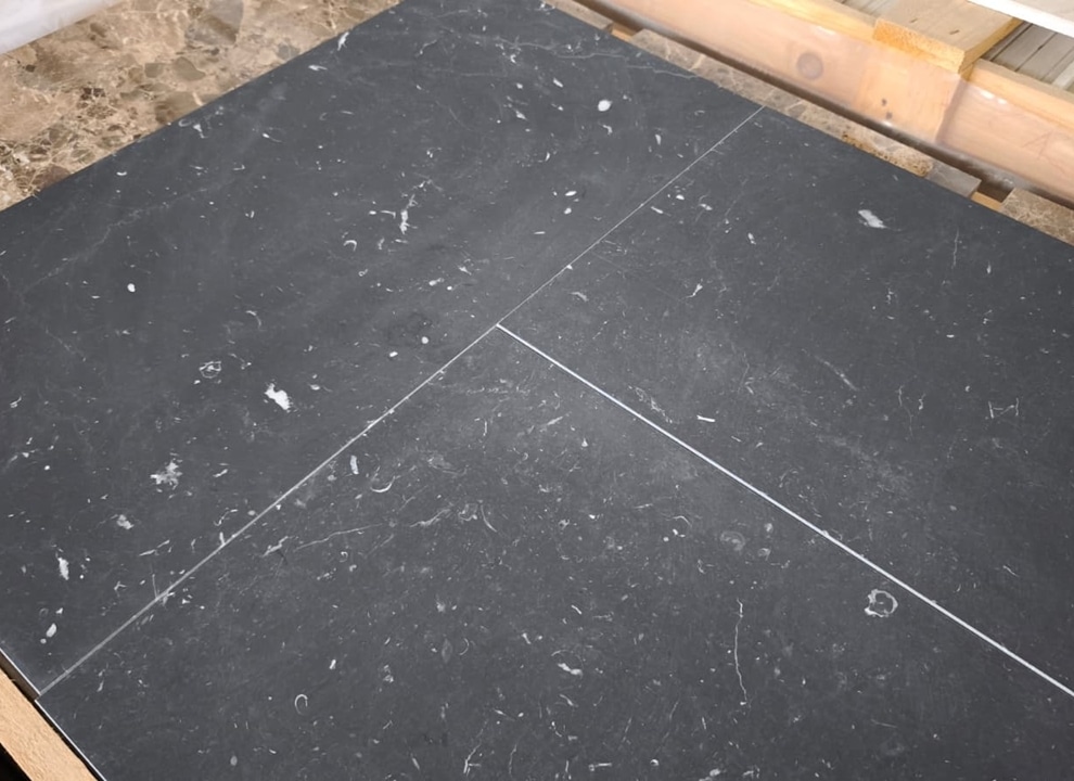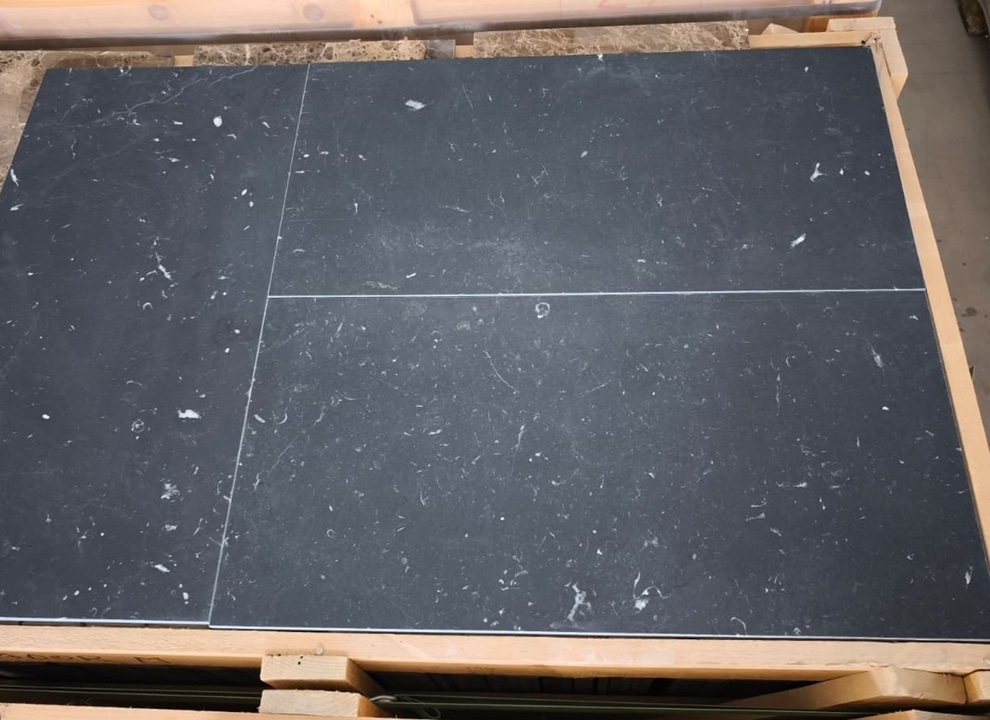 Nero Marquina MH1 – w formie prostokątów 30,5 x 61 x 1cm – to bardzo nowoczesne, eleganckie płytki.