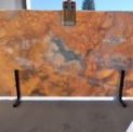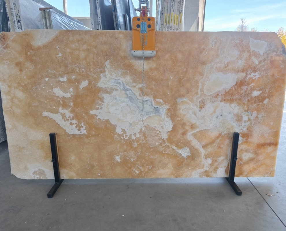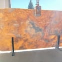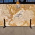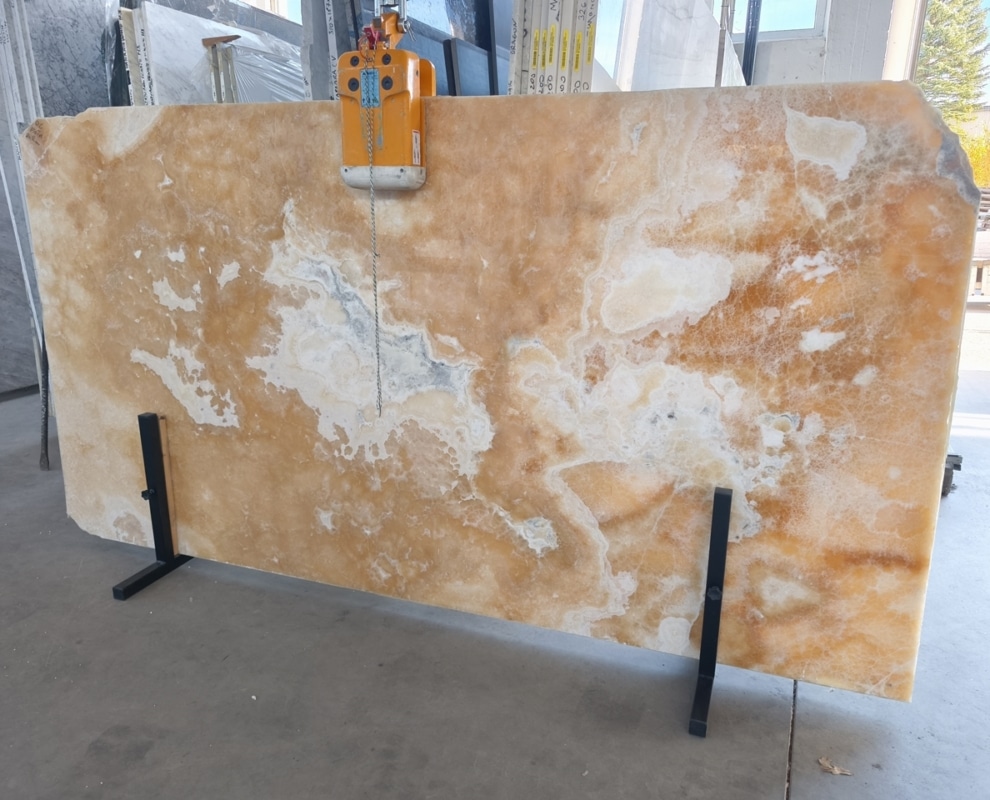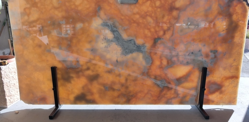 Onyx Honey – polecamy na elementy dekoracyjne, takie jak ławy podświetlane, podświetlane elementy zabudowane w ścianie, lub blaty. Onyx jest materiałem delikatnym, jest to kamień dekoracyjny, transparentny, którego dodatkowe piękno wydobywa się przez podświetlenie. Nie jest to materiał na blaty robocze – kuchenne. Onyx to materiał ekskluzywny.