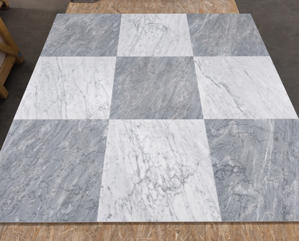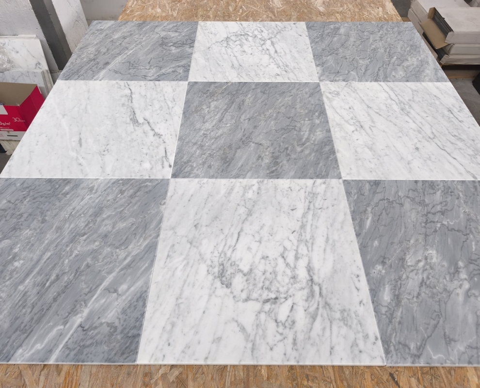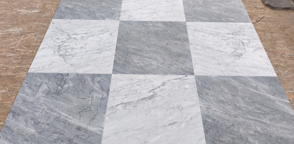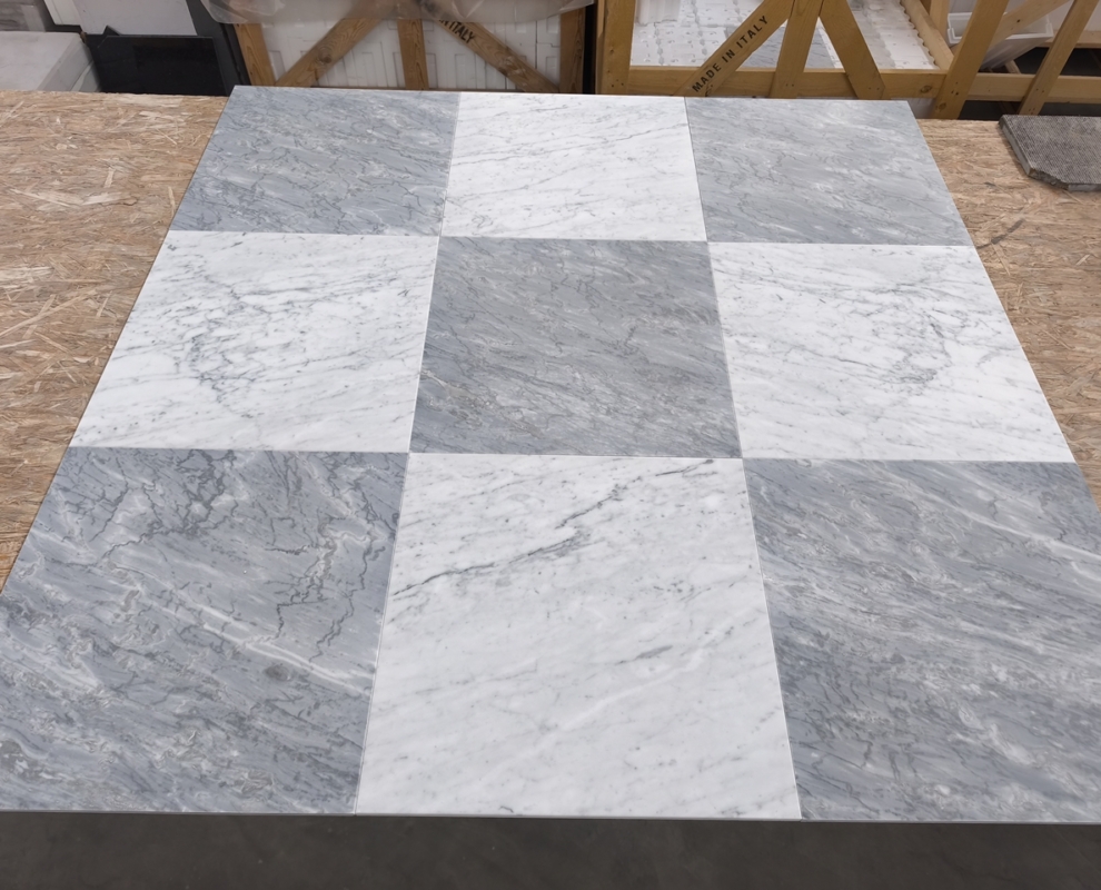 Projektowanie szachownicy: Projektowanie szachownicy marmurowej wymaga dokładnego planowania i precyzji. Możesz zdecydować się na tradycyjny wzór szachownicy, gdzie kwadraty Bardiglio i Carrara będą się naprzemiennie ułożone, lub też na bardziej kreatywny wzór, np. z większymi płytami Bardiglio i mniejszymi Carrara, lub odwrotnie.
