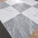 Marmur Bardiglio: Bardiglio to marmur o głównie szarym lub antracytowym kolorze, z delikatnymi żyłkami w odcieniach szarości lub błękitu. Jest on ceniony za swoją wytrzymałość i elegancki wygląd. Wykorzystanie Bardiglio w szachownicy doda pomieszczeniu nowoczesnego charakteru.