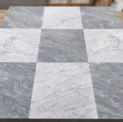Szachownica Bardiglio LH – to duża szachownica, płytki mają wymiary 45,7 x 45,7 x 1cm, połączenie dwóch włoskich marmurów Bianco Carrar- jasny marmur i Bardiglio – intensywny szary. Idealna do większych pomieszczeń, gdzie standardowa szachownica może być za drobna. Delikatny kontrast, lekko pastelowe odcienie, sprawiają, że jest to eleganckie, ale nie krzykliwe połączenia.