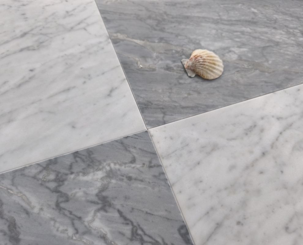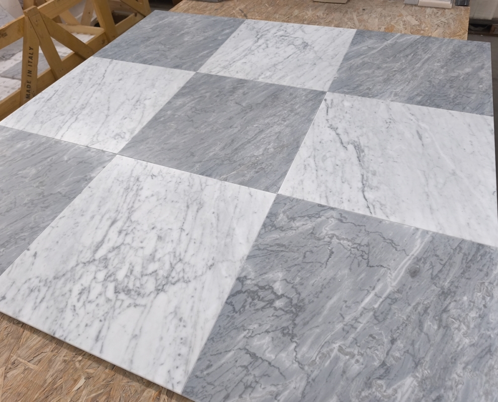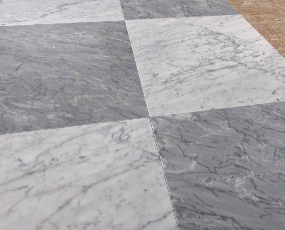 Dostępność: Zarówno marmur Bardiglio, jak i Carrara, są u nas dostępne, w tych samych wymiarach, o tym samym matowym wykończeniu.