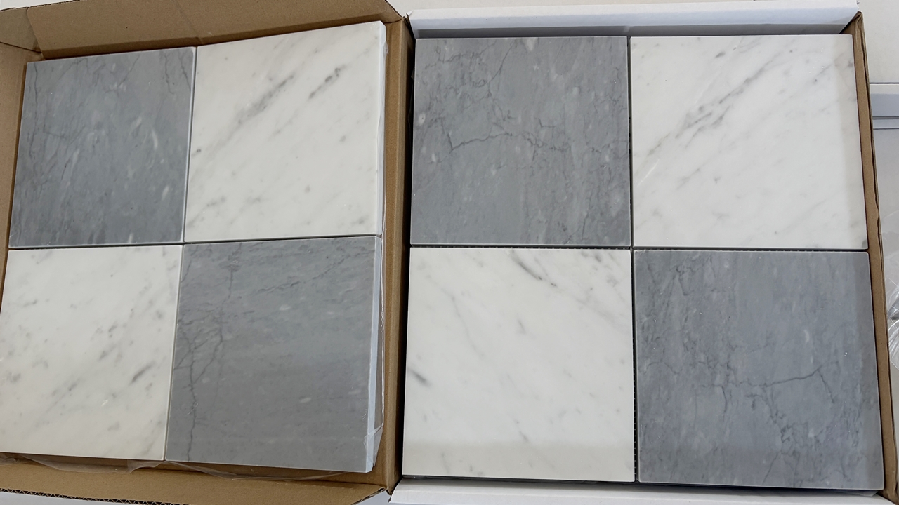 Szachownica Mini Bardiglio – subtelna, o mniejszym kontaraście niż tradycyjna czarno-biała, matowa szachownica na siatce. po cztery kafle na siatce. Piękne marmury, których połączenie już od jakiegoś czasu kradnie serca ludziom ceniącym harmonie, elegancję i komfort. Od dziś w wersji mini, czyli kafle mają rozmiar 15 x 15cm, rozmiar dłoni.
