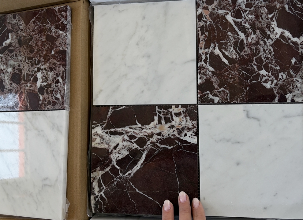 Szachownica Mini Rosso – to propozycja dla tych, którzy szukają czegoś niepowtarzalnego, nietuzinkowego i ponadczasowego jednocześnie. Na siatce połączone są 4 kafle, co ułatwia montaż i poprawia bezpieczeństwo marmuru w transporcie.